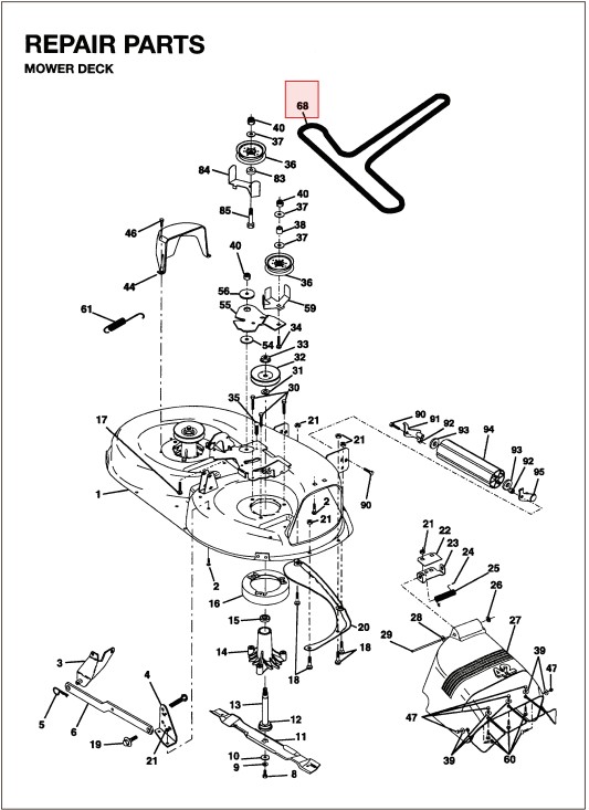 Rem klippaggregat LT1238, LT1538, LTH120, LTH130, LTH140 mfl i gruppen Reservdelar Gräsklippare / Reservdelar Husqvarna Traktorer / ➤ YT & YTH modeller / Reservdelar Husqvarna YTH 190 hos Gräsklipparbutiken (5321442-00)